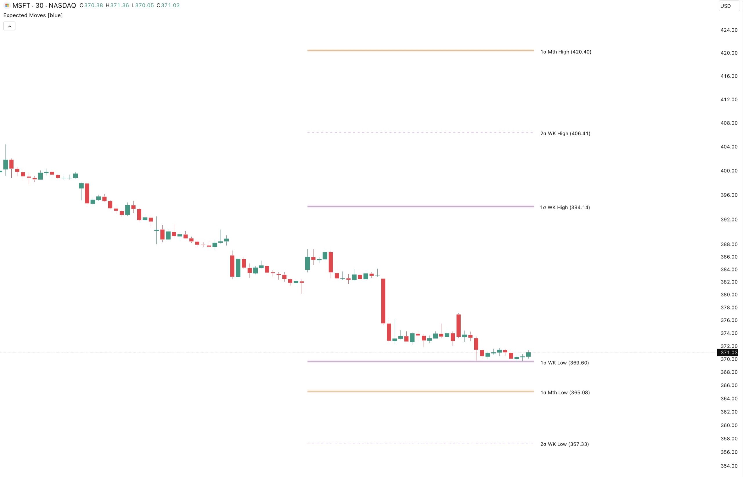 Expected Move (EM) levels represent the statistically probable price range for a given timeframe, derived from options implied volatility. These levels help traders: